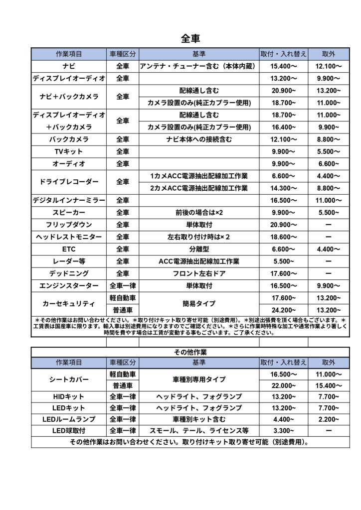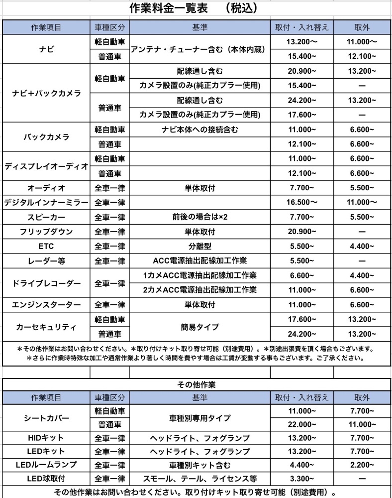 例:カーナビを軽自動車に取付(作業時間約1.5時間)